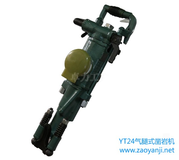 YT24型氣腿式鑿巖機(jī),是一種新型高效的鑿巖機(jī)械。廣泛應(yīng)用于礦山巷道掘進(jìn)及各種鑿巖作業(yè)中鑿巖爆破,是冶金、煤炭、鐵路、交通、水利建設(shè)及國防石方工程不可缺少的重要機(jī)具。YT24型鑿巖機(jī)的適用范圍較廣,最適用于在中硬或堅(jiān)硬(f=8-18)巖石上鑿巖水平和傾斜炮孔,也可垂直向上鑿頂板上的錨桿孔。炮孔直徑一般為34-42毫米,有效經(jīng)濟(jì)的鉆孔深度可達(dá)5米。本機(jī)即可以根據(jù)巷道斷面大小與FT140BD型短氣腿或FT140BC型長氣腿配套使用,也可以裝在鉆車或鉆架上工作。