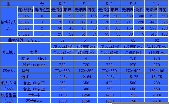 K型往復(fù)式給煤機(jī)技術(shù)參數(shù)表