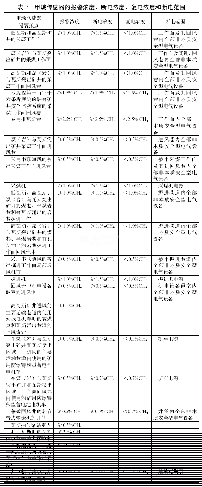 第一百六十八條 甲烷傳感器報警濃度、斷電濃度、復電濃度和斷電范圍必須符合表3規(guī)定。