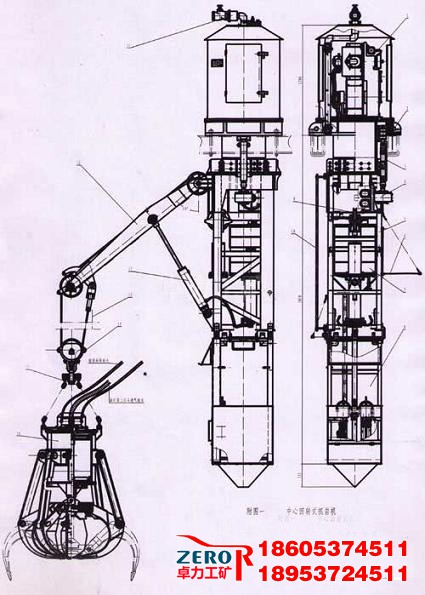 HZ一6B型中心回轉(zhuǎn)抓巖機(jī)主要用于開鑿豎井時(shí)抓取井內(nèi)暴破后松散的巖石和礦物,抓裝卸入吊桶以實(shí)現(xiàn)出碴的自動(dòng)化操作,對于提高鑿井速度和安全可靠性起到了至關(guān)重要的作用,并可用于地面抓取松散物料。