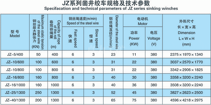 JZ系列鑿井絞車具有提吊能力強(qiáng)、容繩量大、運(yùn)轉(zhuǎn)平穩(wěn)等優(yōu)點(diǎn)。 用途 主要用于金屬礦、非金屬礦豎井的井筒掘進(jìn)工程懸吊吊盤、水泵、風(fēng)筒、壓縮空氣筒、注漿管等掘進(jìn)設(shè)備和張緊穩(wěn)繩,也可作其它井下和地面起調(diào)重物使用。
