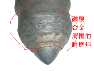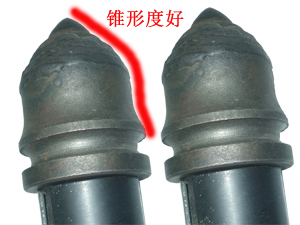 優(yōu)勢一: 齒尖鑲有22mm超粗壓燒優(yōu)質(zhì)硬質(zhì)合金, 與其他截齒相比,更加堅固耐磨 | 優(yōu)勢二: 合金周圍融覆耐磨焊層, 有效保護(hù)好合金不脫落,更長久耐用。 |