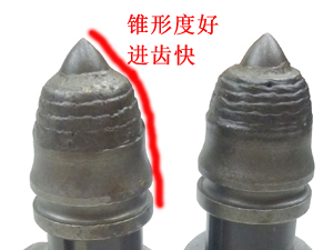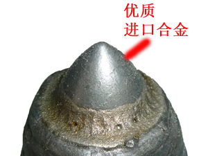 優(yōu)勢(shì)一: 齒尖采用進(jìn)口合金, 其耐磨性是普通截齒的2~3倍 | 優(yōu)勢(shì)二: 齒尖鑲有超粗粒壓燒結(jié)硬質(zhì)合金鑲嵌, 合金直徑為22mm,超級(jí)耐磨 |