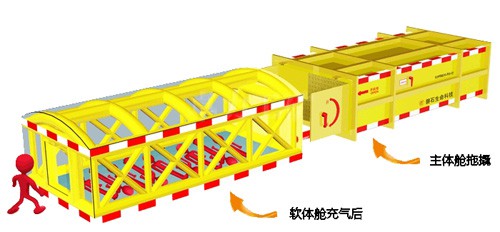 現(xiàn)國內礦山安全避險無很好的措施。為在很好保護災變發(fā)生后人員安全,設計一種鋼結構救生艙,艙內配置飲用水和食物。用于礦難發(fā)生后的緊急避難,放置于礦山井下作業(yè)面附近。在遇險人員無法撤離危險區(qū)域時可以迅速躲進救生艙,救生艙無需外部能源補給,就可以為幸存人員躲避有毒有害氣體、濃煙煙塵及氧氣缺乏等危害,提供一段時間的生命生存保障。對于挽救井下幸存人員的生命具有積極而重大的意義。